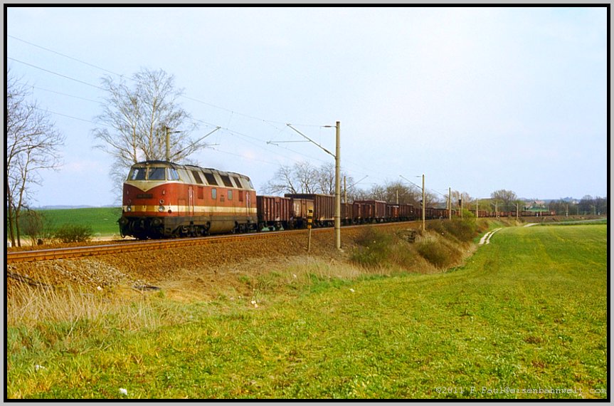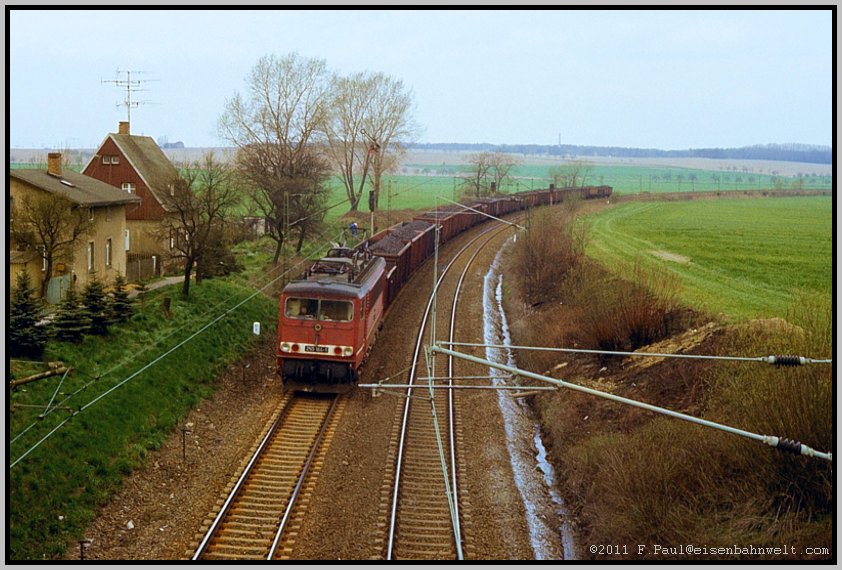 Zu schön ist der Anblick, um da schon weiterzulaufen! Da röhrt auch schon 132 417 mit E 995 aus Cottbus heran. Eigentlich hängt da eine Personenzuggarnitur