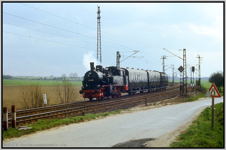 Von der anderen Seite nähert sich dagegen 74 1230 mit einer Garnitur preußischer Personenwagen, als 93304. |