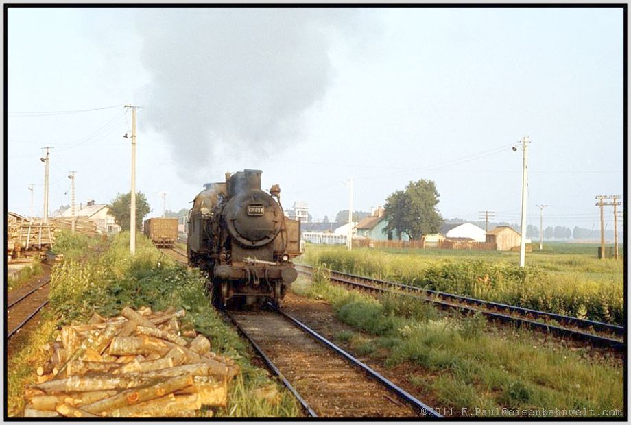 An der "Beholzungsstelle" dampft 764 001 vor sich hin, die Vorräte sind schon aufgefüllt. Und der zum Sägewerk gerichtete