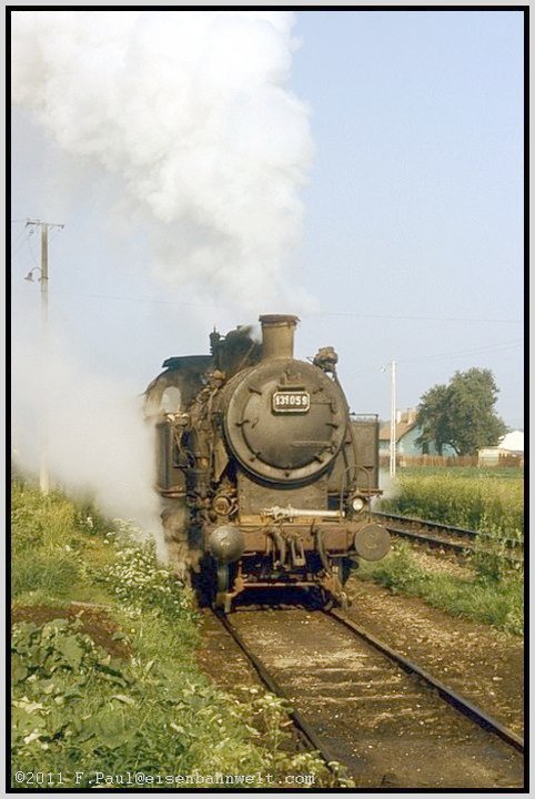 zusammengestellt, immer länger wird, tritt auch ein dritter Akteur auf die Bühne des Geschehens: Die CFR-Lok 131 059 taucht auf, um drei Ea-Wagen