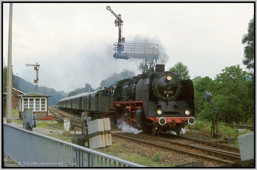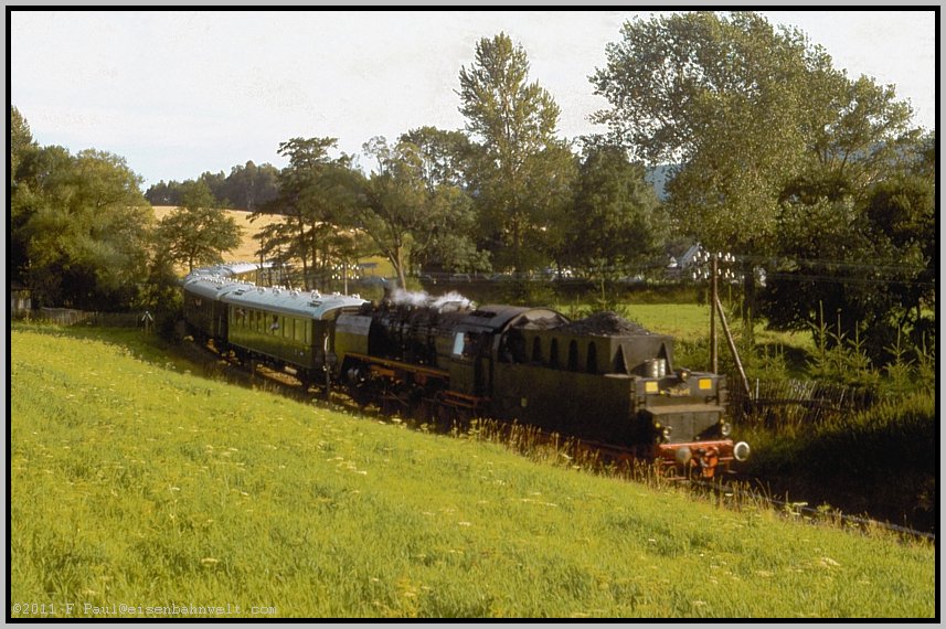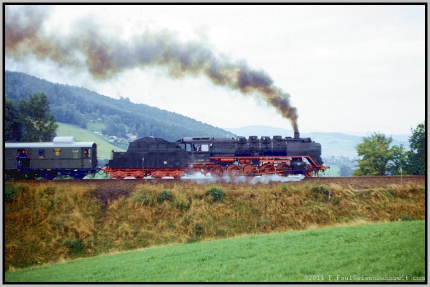 50 849 mit dem Zwickauer Eilzug in seiner vollen Länge und Schönheit rollt mit der Streckengeschwindigkeit von 65 km/h an uns vorbei! Der Tag fängt doch gut an, oder?