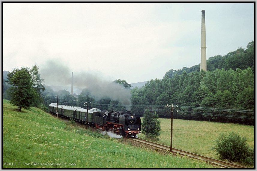 Ein anderer Bahnfan teilt uns mit, daß 50 3696 jetzt den Viadukt befahren wird. Da kommt sie auch schon, poltert über die Stahlkonstruktion,