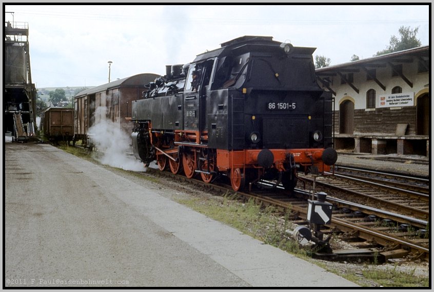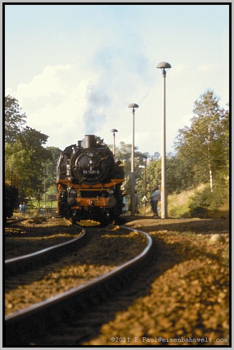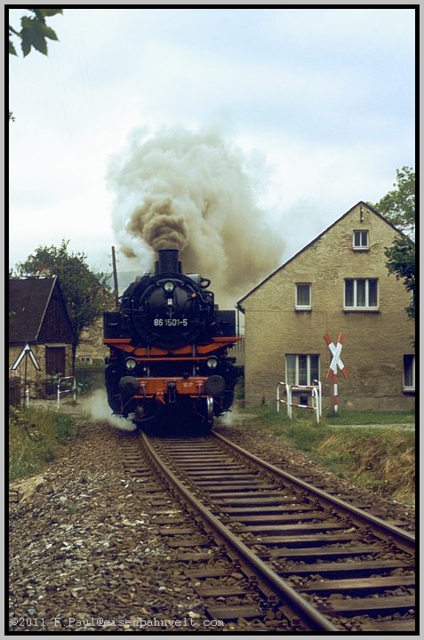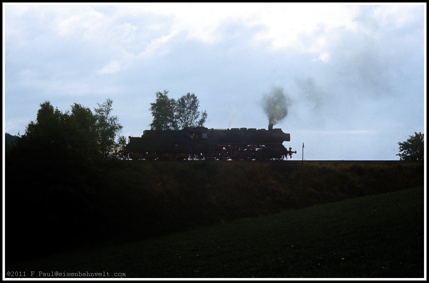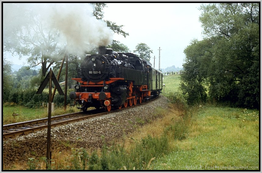 Schnell noch ein Gegenlichtbild, dann fahren wir wieder nach Waltersdorf, um die dort noch pendelnde 86 1501 nochmals auf Film zu bannen.
