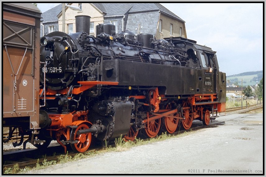 Wir postieren uns nun nochmals in der Einfahrt von Waltersdorf. 86 1501 sollte in Schlettau den Sonderzug verlassen und die Nachmittagsrunde auf