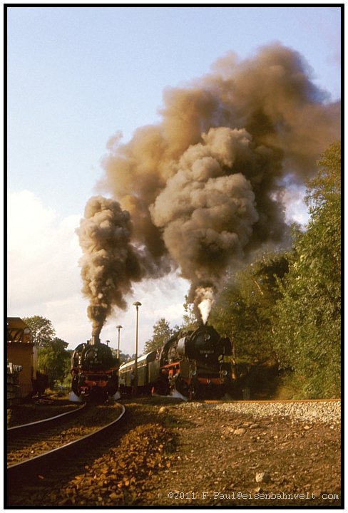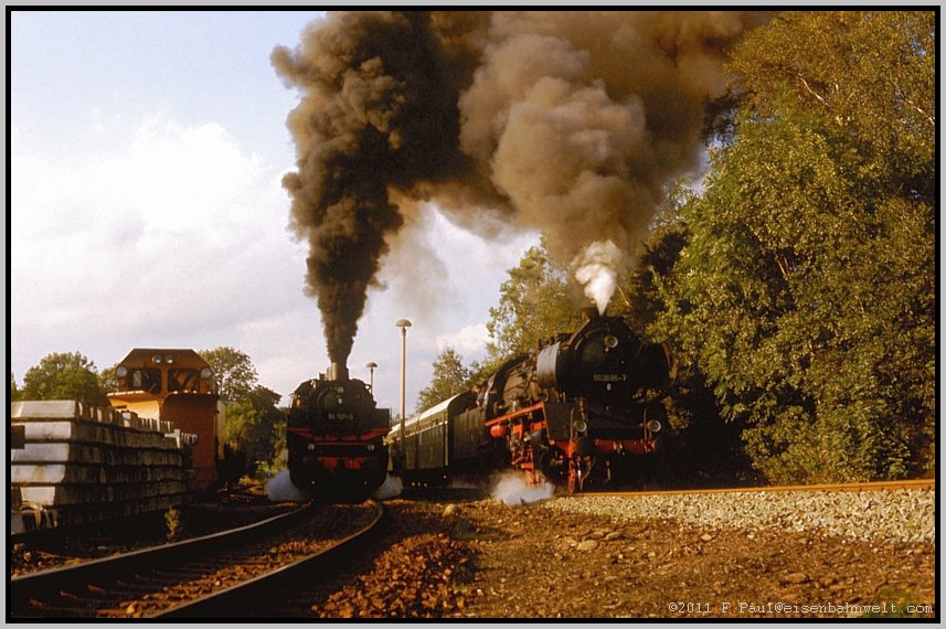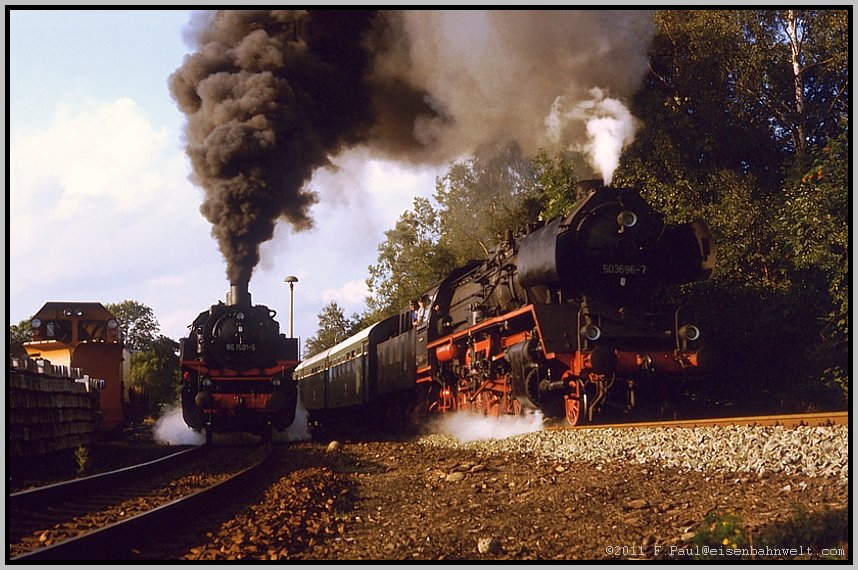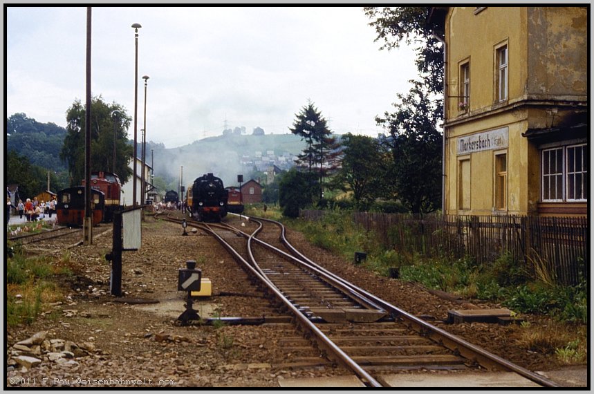 hinab rollt (oben rechts). Aber mit Überraschung! Die Glauchauer 50 3696 läuft als Schlußlok bis Markersbach mit und verstärkt die hier schon ausgestellten Loks: