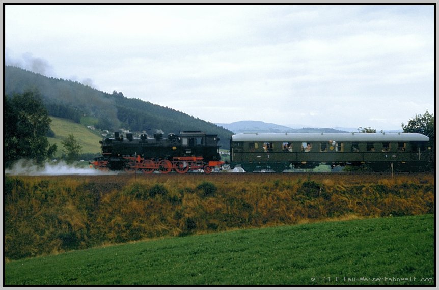 Auch in Scheibenberg hat der Zug einen genügend langen Aufenthalt, so daß wir ihn auf dem Scheitelpunkt der Strecke wieder erwischen. Als erstes