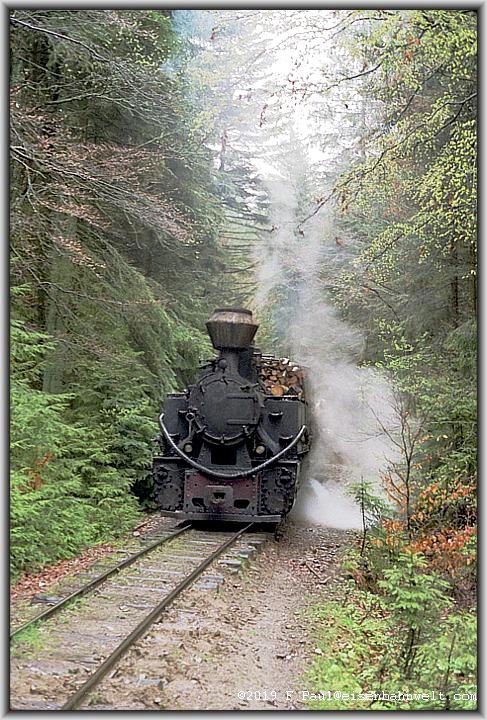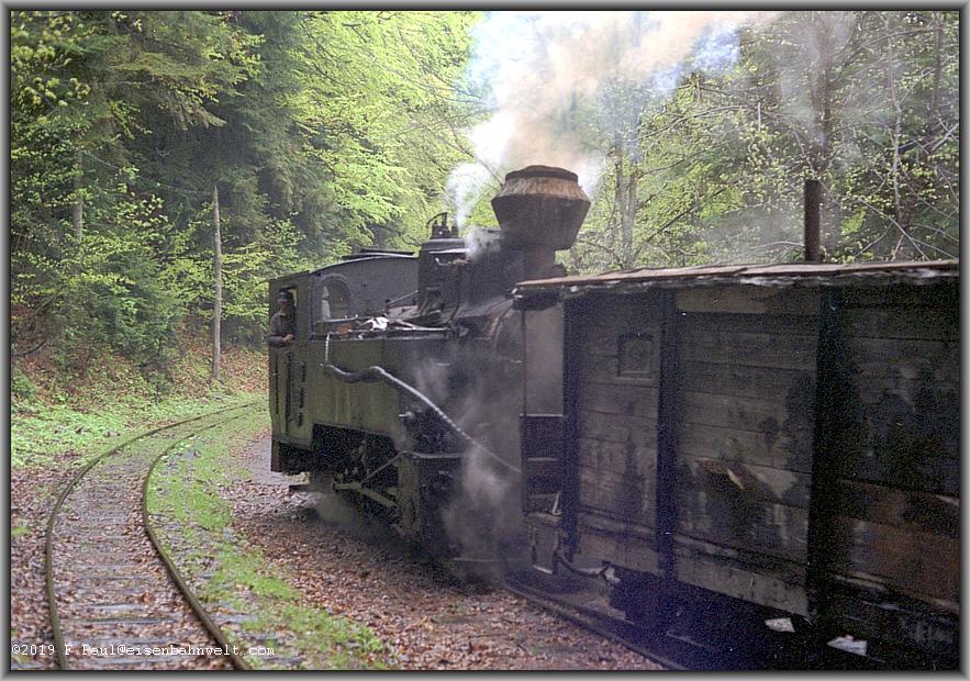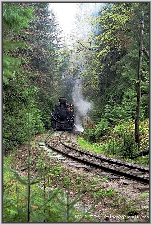 eine Waldbahn vor! Da nimmt man auch die naturgemäß in einem dichten Wald herrschende Dunkelheit in Kauf! Weiter geht's, der Endbahnhof ist nicht mehr weit!