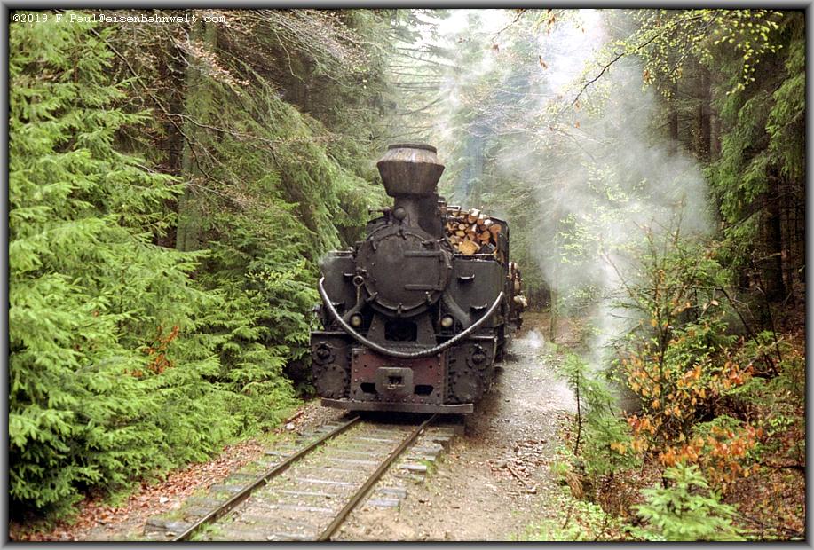 von Lok und Bremsern gestoppt, eine durchgehende Bremse besitzt er ja nicht. So auch an einer Bachbrücke, wo Wasser genommen und Holz nachgeladen wird. Leider nur ein Bild.... Der Verbrauch der unter Vollast