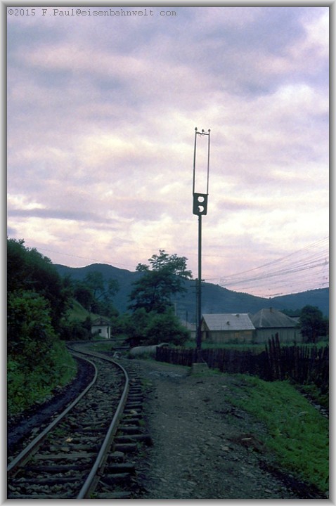 gellt plötzlich der Pfiff einer Dampfpfeife durch das stille Tal. Na dann los, nach Valea Scradei ist es ja nicht weit. Vorbei am Einfahrsignal,