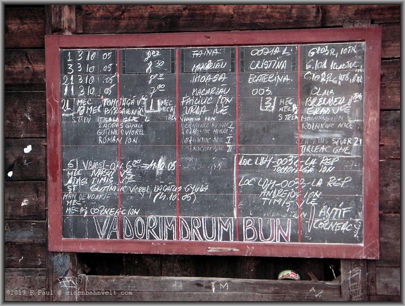 nach Macarlau gerade verlassen hat, mit der Lok 87 003(3), in der letzten Spalte steht wohl seine Wagenreihung. Und ganz oben ist unser Fotozug aufgeführt, er soll um 08:00 mit der Lok Cozia 1