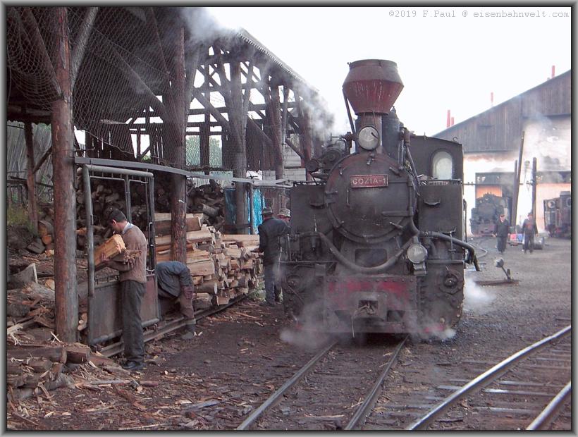 Ohne Holz kein Feuer und kein Start in die Berge! Grund für einen längeren Aufenthalt am Holzplatz zur Erstausstattung mit Brennstoff. Der geringe Platz auf der Lok
