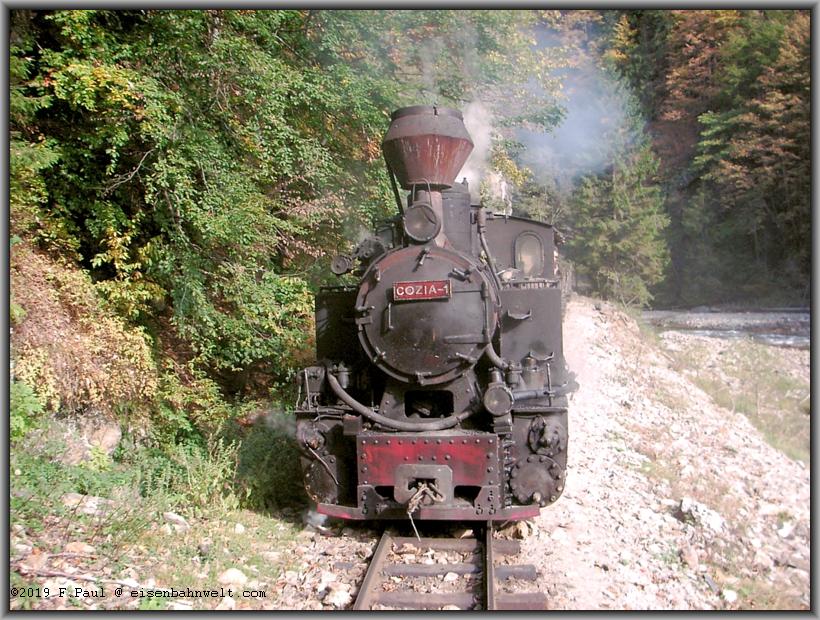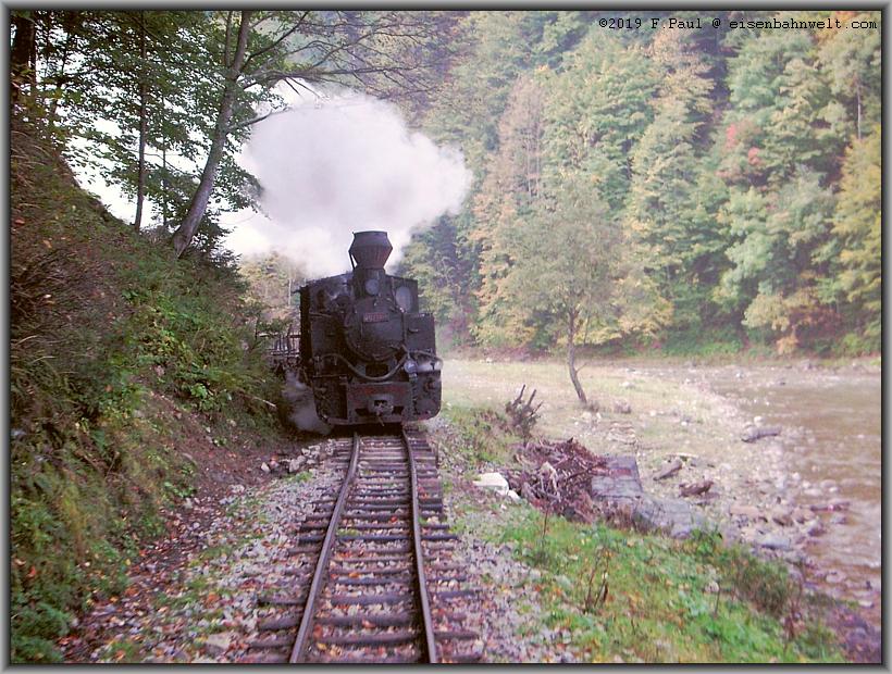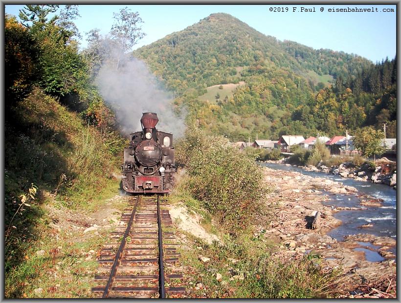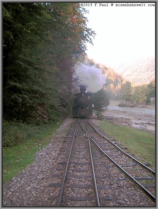 Zwischen Novat Delta und Glimboca entstehen die nächsten vier Bilder. Das Tal verläuft hier in östlicher Richtung und das Gleis südlich des Flusses im Schatten, so daß