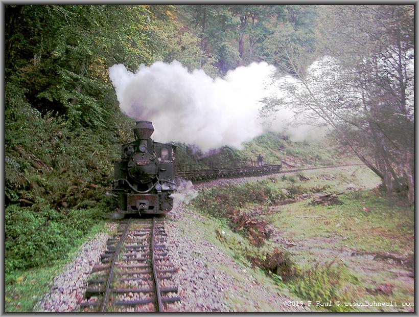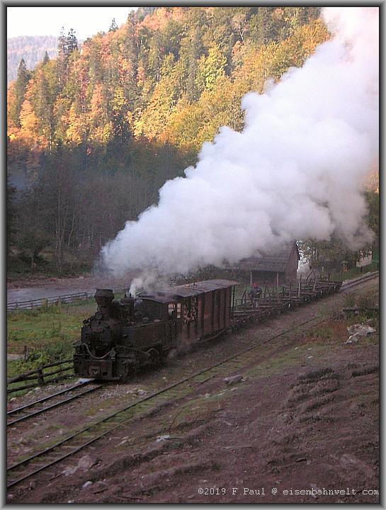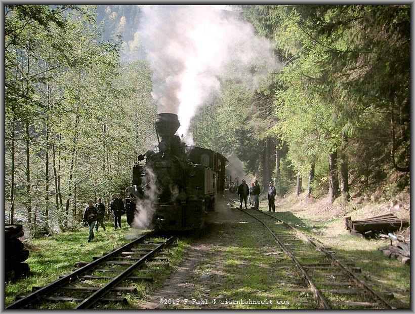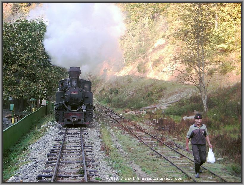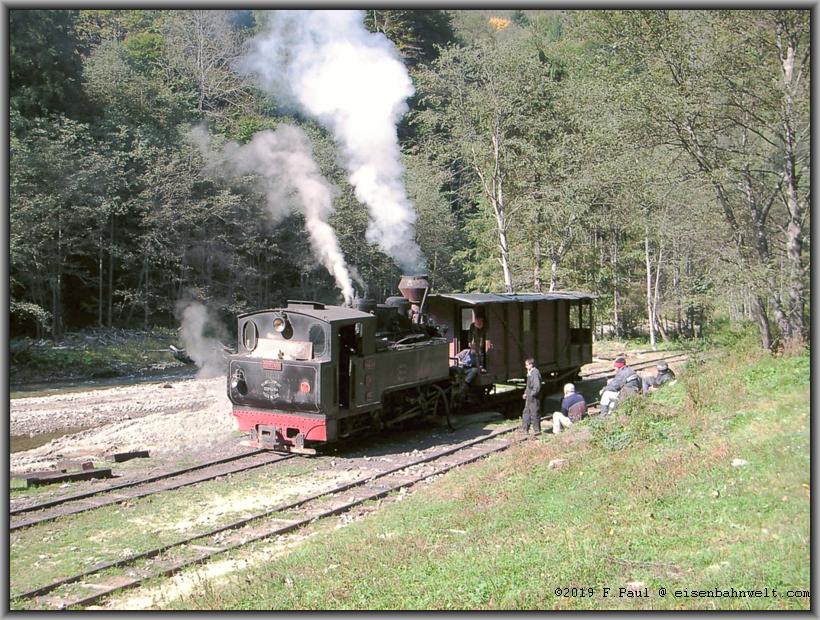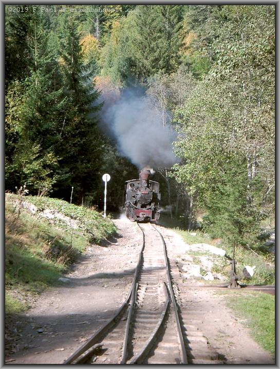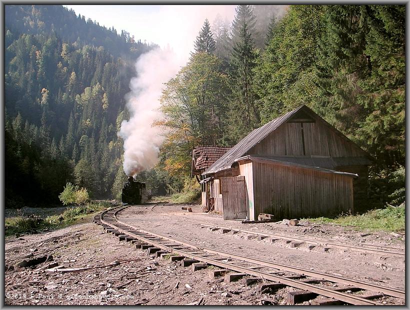 Paltin ist erreicht. Noch ist's ein romantischer Ort, ohne die einige Jahre später einsetzende Bebauung mit den Utensilien des Wendebahnhofs für den Touristenzug. Und so klettern wir