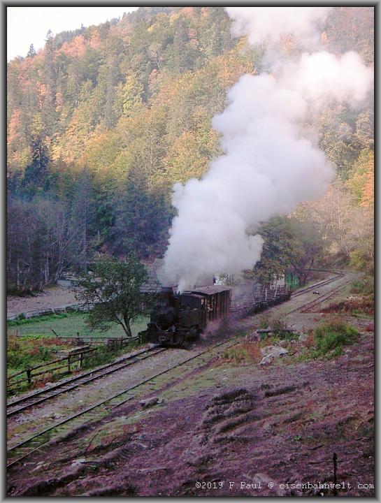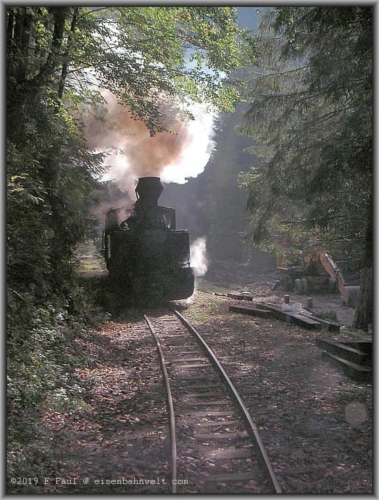 hier drei malerische Bilder der etwas anderen Art entstehen, garniert von einer wunderbaren weißen (Holz-) Dampfwolke. Erstaunlich wirkt auch der recht gut aussehende Zustand des Oberbaus,