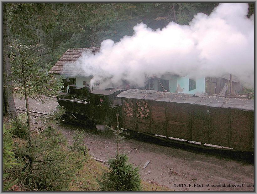 wird dabei mit Holz vollgestapelt, für Nachschub sorgt dann ein mitgeführter Dienstwagen, welcher schon wohlgefüllt auf die Abfahrt wartet.
