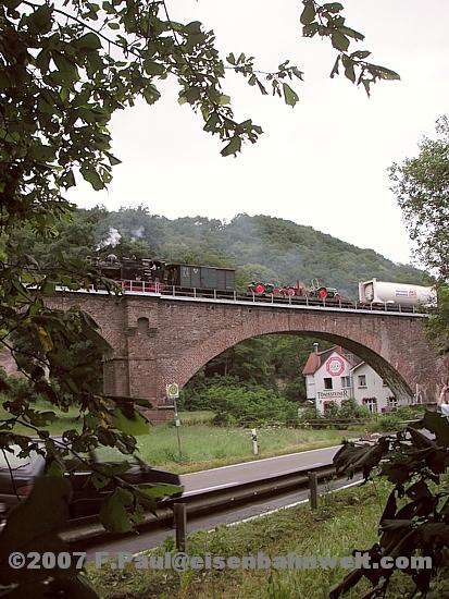 Auch dieser Standpunkt ist ein Volltreffer! Durch die "Fußhölle" befördert die Dampflok den nunmehr reinen Personenzug