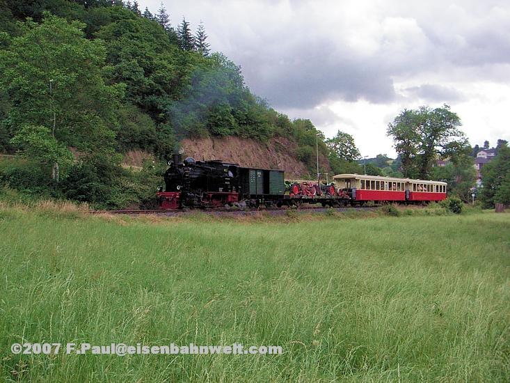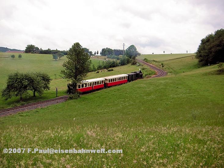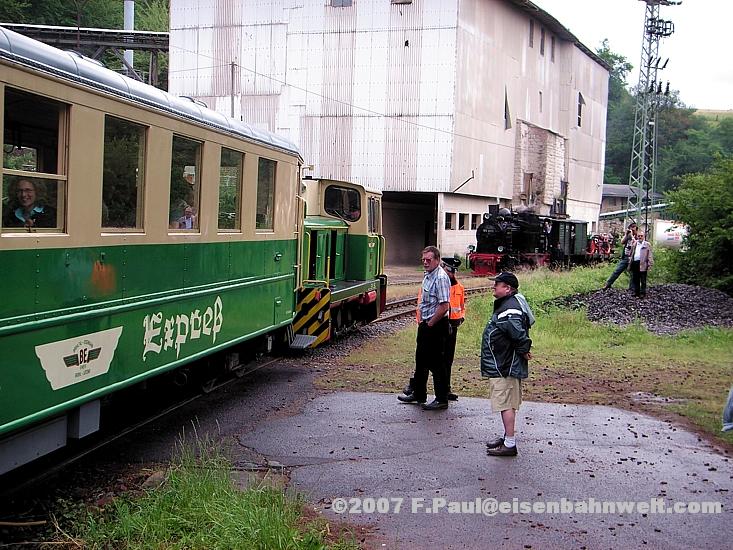 Vulkan-Expreß mit Lok D 2, der dann auch zum Glück nicht lange auf sich warten läßt und uns wieder aufsammelt (unten). |