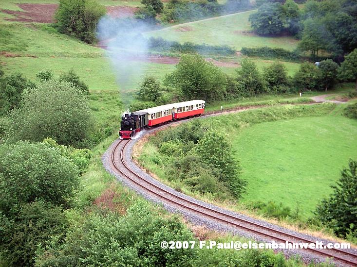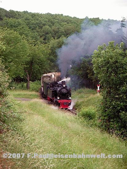 Engeln davoneilenden Zug sei noch geworfen: Dieser Streckenteil liegt in einer Landschaft, welche etwas an die Benneckensteiner Hochfläche erinnert! |