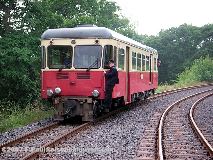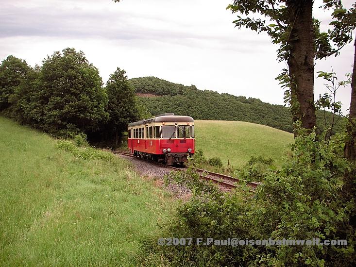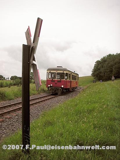 Die Wanderung zum Bahnhof Engeln wird durch die Rückkehr des VT 30 unterbrochen, er rollt durch
