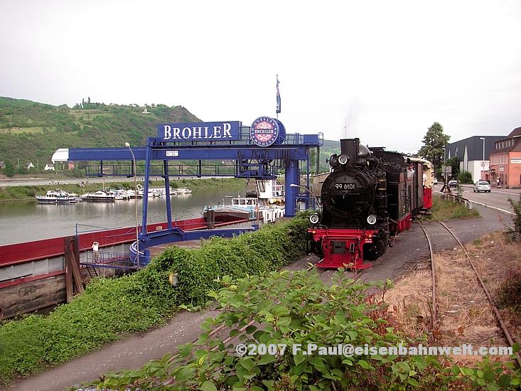 für Mineralwasser:"Brohler- Quellen des Wohlseins". Mineralwasser brauche ich dazu heute nicht, ein Schmalspurzug