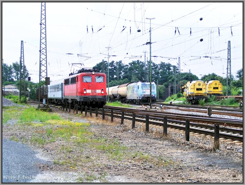 Die Strecke nach Gremberg ist dreigleisig, eine Paralleleinfahrt nach Köln-Kalk Nord ist möglich: 140 499 rollt mit mit US-MCV 69994 (Grafenwöhr-Bremerhaven)