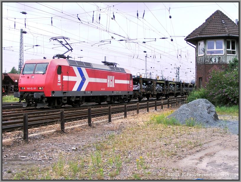 passiert HGK-145-CL 011 mit Dgs 90420 (Rheinhausen-Passau) den Bahnhof. |