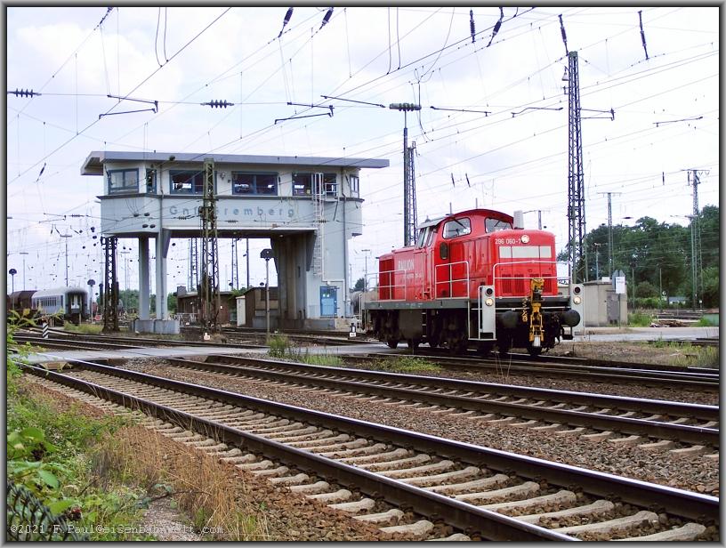 Stellwerk "Gnf" hindurch an ihren nächsten über den Ablaufberg zu drückenden Zug. Diszipliniert (oder besser gesagt, erstaunlich gottergeben) warten derweil die Verkehrsteilnehmer