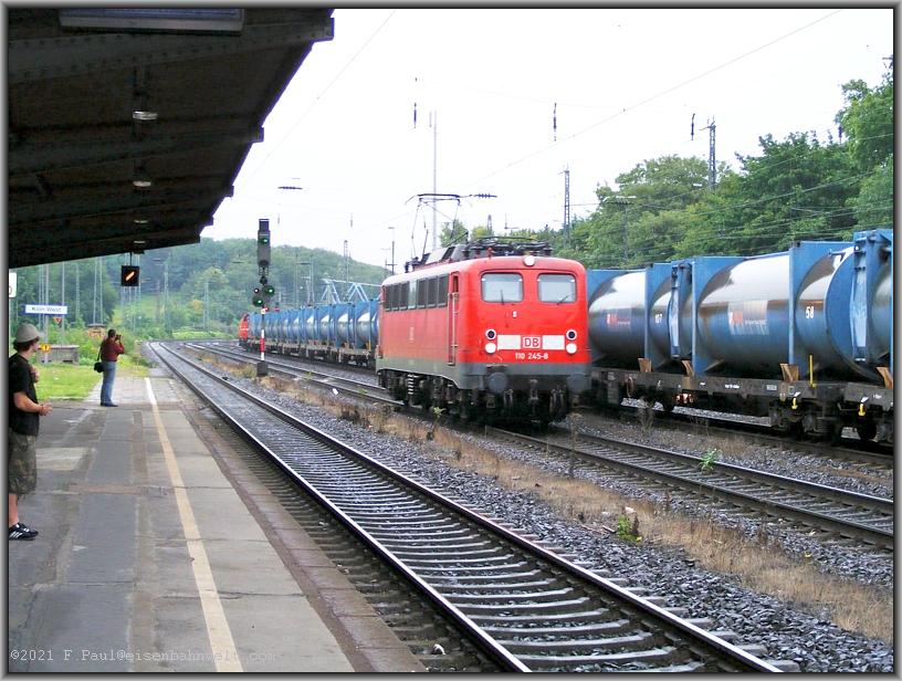 in den Bahnhof, daneben erreicht ihn die bunte 185 152 mit ihrem Nahgüterzug. Auch zwei Krupp-EDK's warten dort vergessen auf zugewachsenen Gleisen auf ihr weiteres Schicksal. Wenig später