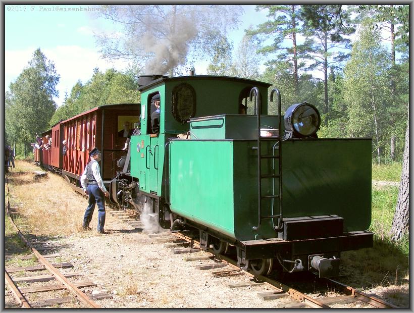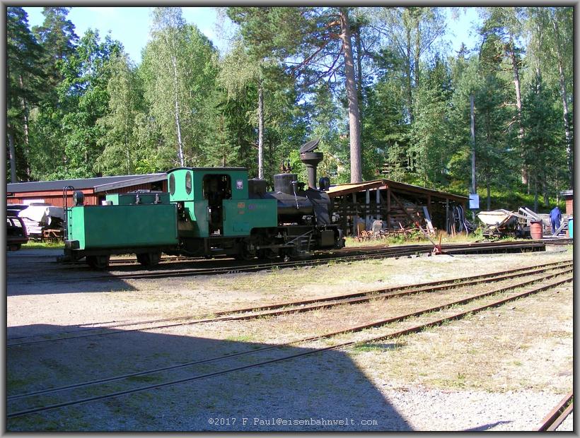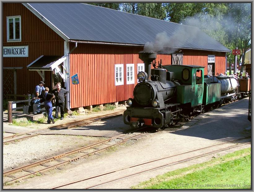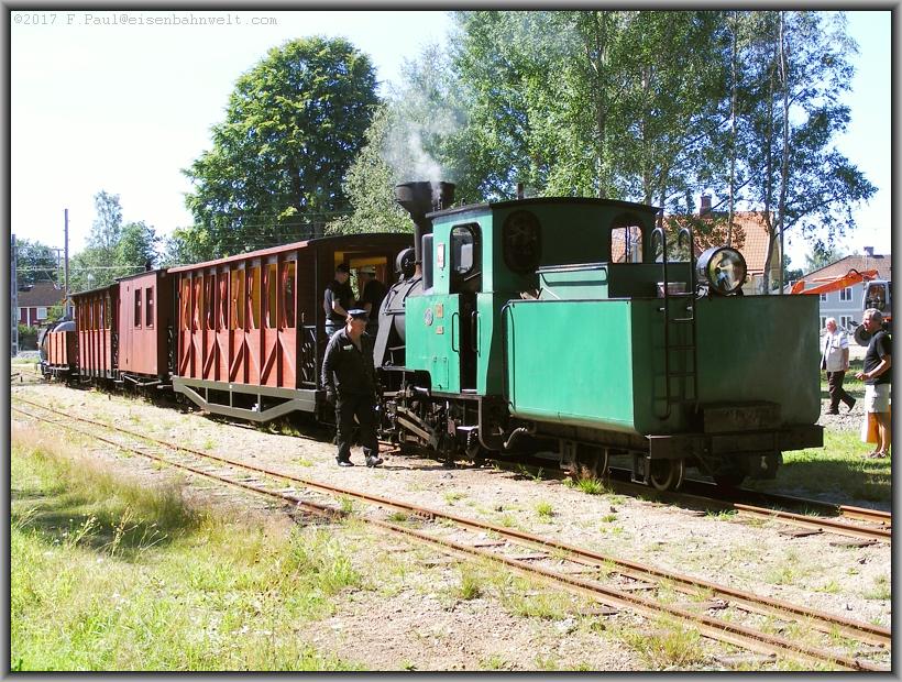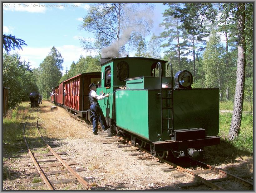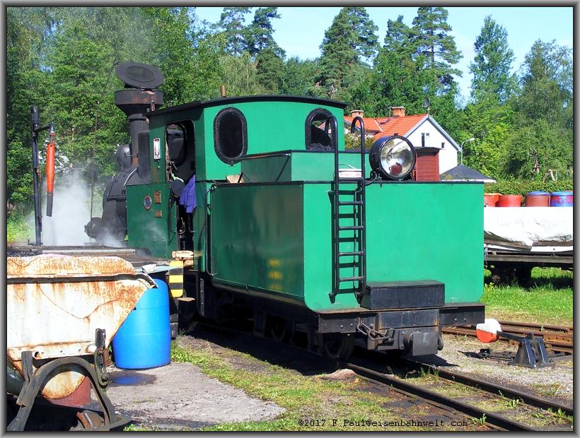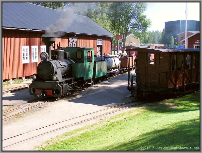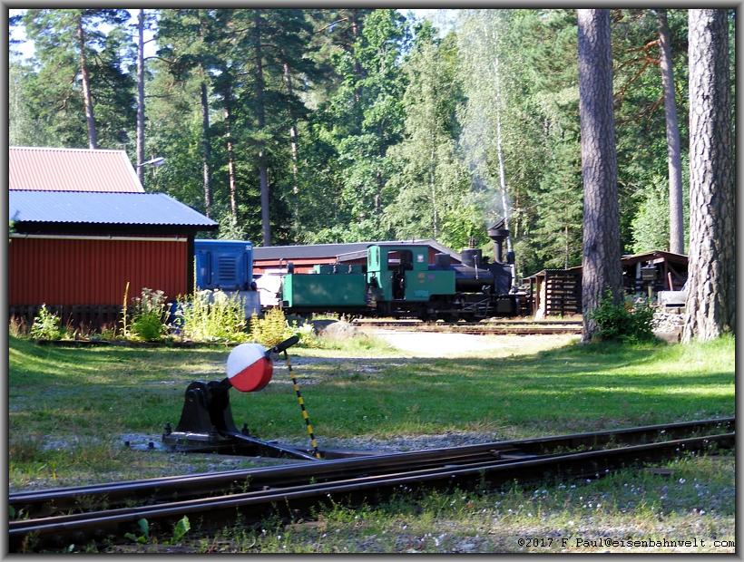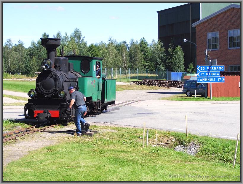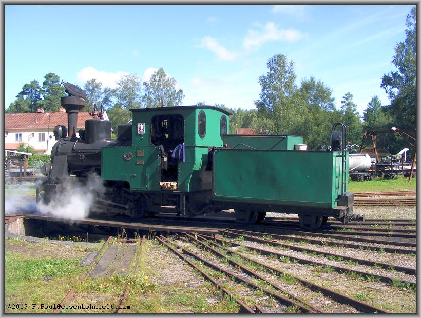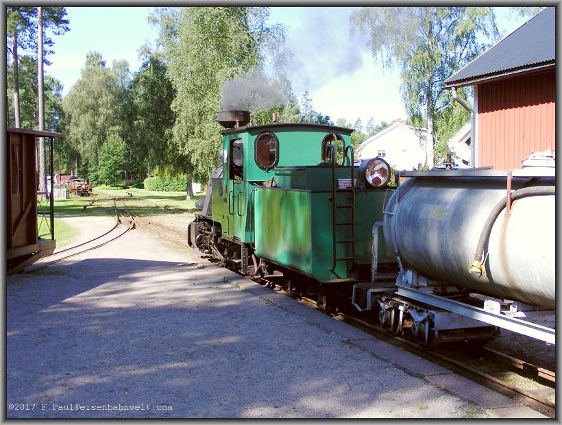 Viel Platz gibt es in Schweden! Dann ist die Weiche umgestellt und einer Umfahrung des Wagenzuges steht nichts mehr im Wege. Gemächlich verschwindet die Dampflok