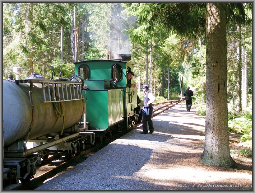 Ein paar Minuten der Ruhe bleiben noch, um aus etwas weiterer Entfernung das idyllisch im Wald gelegene Bahngelände in Augenschein zu nehmen, natürlich zusammen