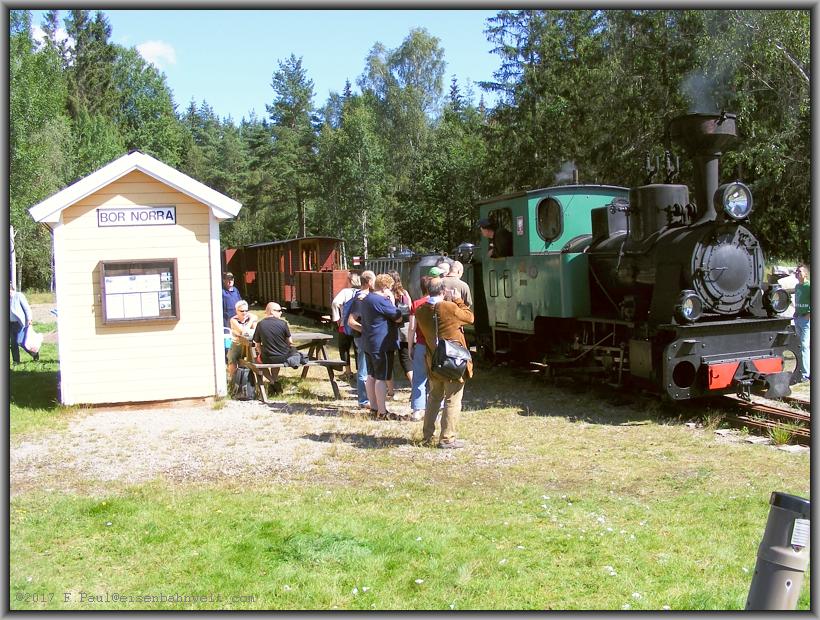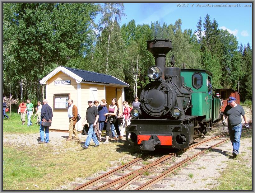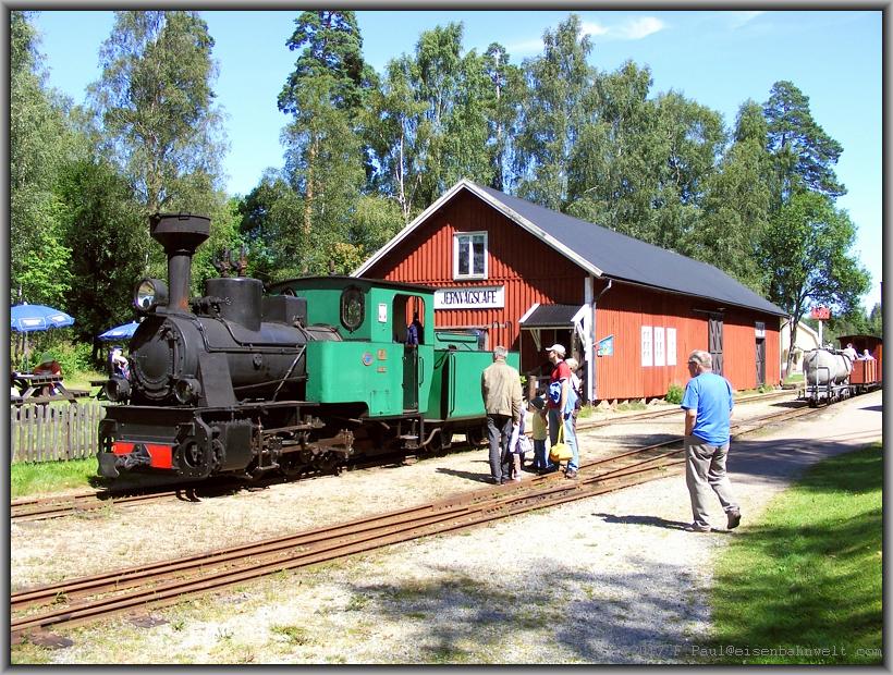 bei der etwa 14 Kilometer langen Ohsabanan, einer reizvollen Museumsbahn von Ohs Bruk nach Bor Norra an der Hauptbahn von Göteborg nach Karlskrona.