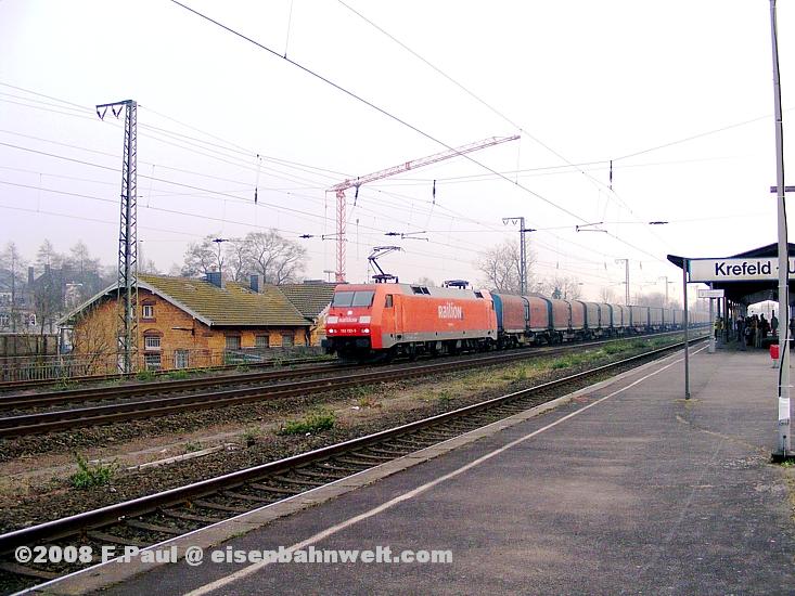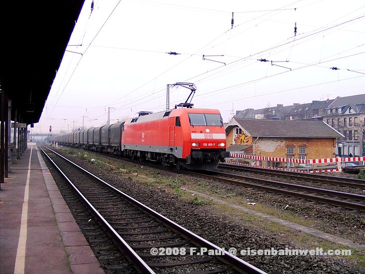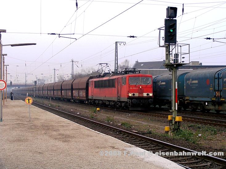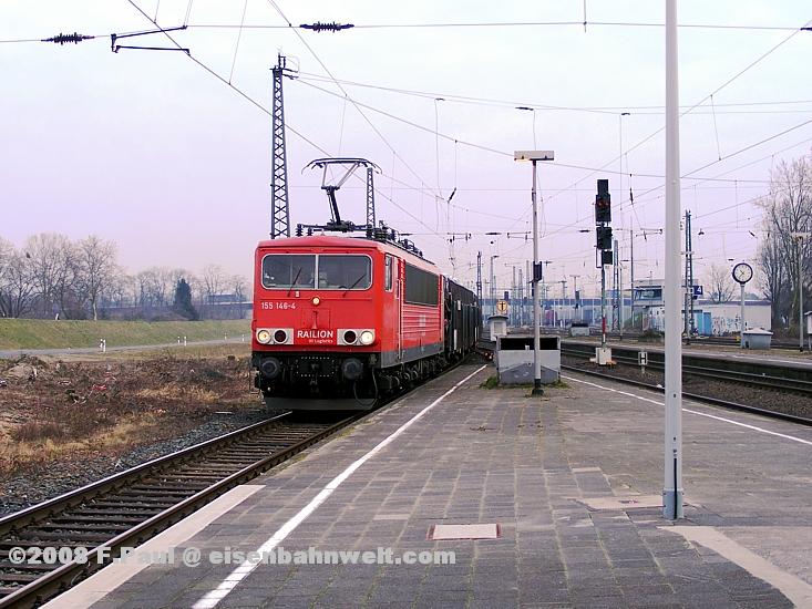 Und immer noch keine Dampflok! Stattdessen rollt 155 146 mit FR 52068 (Gremberg-Wanne Eickel) in Richtung Moers. Auch ein Umleiter wegen des Schienenbruchs,