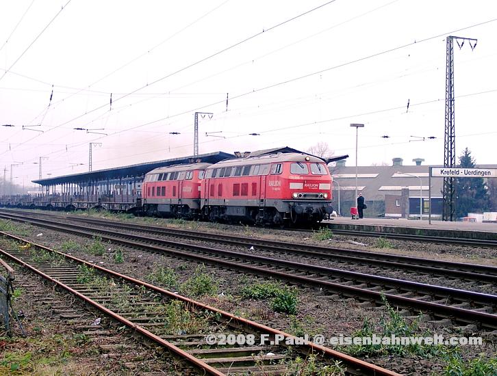 Wir fahren nach Krefeld-Uerdingen an die dort viergleisige Strecke, gerade rechtzeitig, um 225 005 und 225 001 vor einem schweren Ganzzug mit Stahl von Krefeld nach Bochum Nord (CS 61271) abzulichten, der
