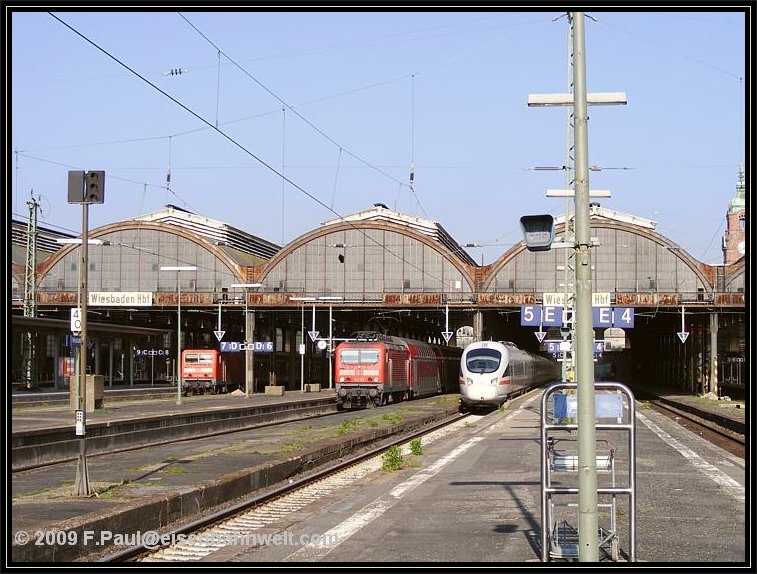 Züge den Wiesbadener Hbf. Da ich ja eigentlich vom Rheingau erzählen möchte, hier nur zwei Bilder: 411 029 rollt