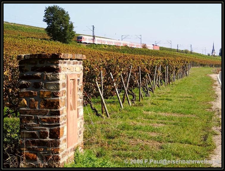 von Geisenheim, dem nächsten Ort, beginnt. Ein Überholgleis auf der freien Strecke sozusagen, heute aber stillgelegt und abgeschnitten. Kein Lokführer