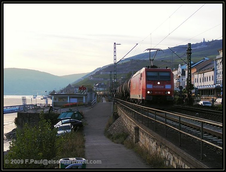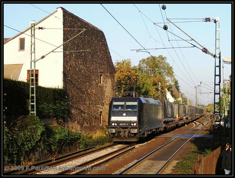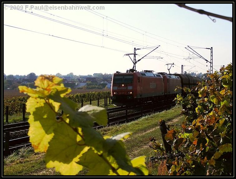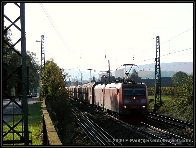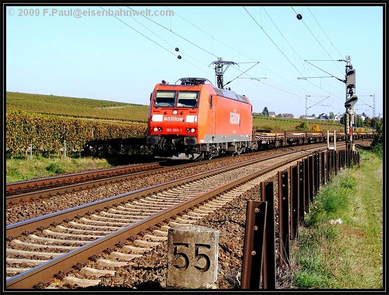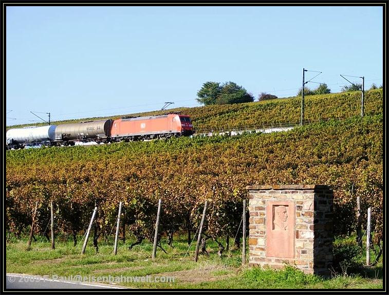 nach Wiesbaden. Und, vom Weinberg aus fotografiert, folgt CS 47919, ein 3400 Tonnen-Kohlezug von Neuss zur ÖBB. 185 157 und 185 155 teilen