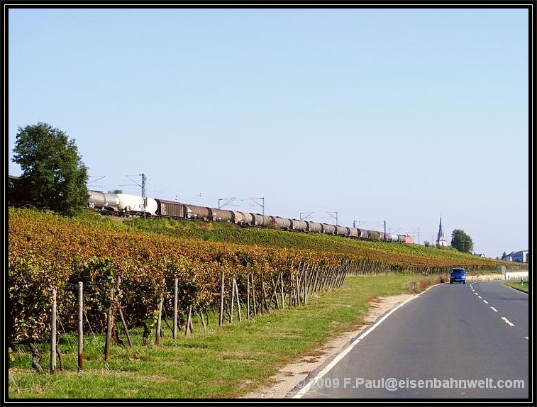 von Gremberg nach Mannheim. Die Zugbildung sieht aus wie ein Kesselwagen-Ganzzug, auch die Last des Zuges von immerhin 1644 Tonnen