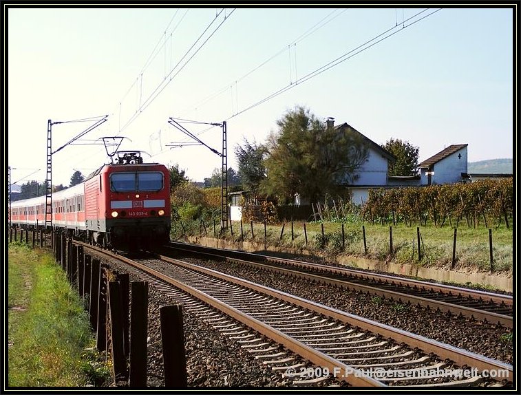 Hier noch einige Bilder vom Bahnhof Oestrich-Winkel: Oben rollt 143 133 mit RE 15414 von Frankfurt (M) nach Koblenz an besagten