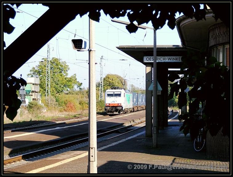Schwellenstapeln vorbei, kurz darauf folgt ITL-186 150 mit DGS 42500 nach Antwerpen. Und von der anderen Seite her wird gleich 152 123 mit