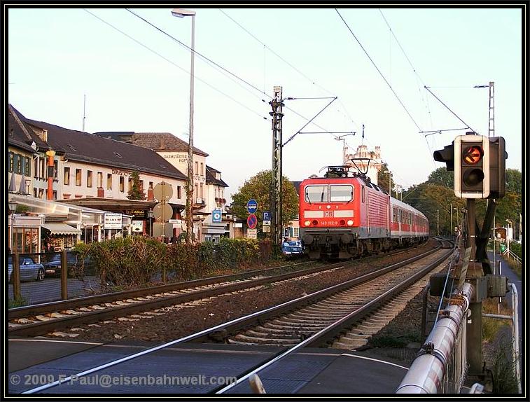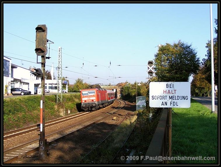 wird sich hier mehr "bei Halt sofort beim Fdl melden", wie das Schild anordnet. 143 580 rollt mit RB 15532 nach Assmannshausen vorbei, einem Mo-Fr-Verdichterzug.