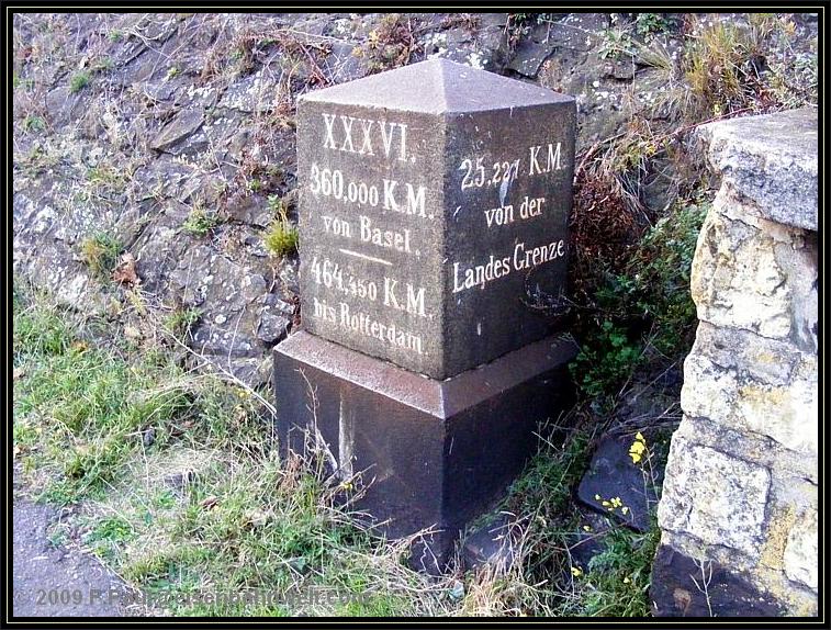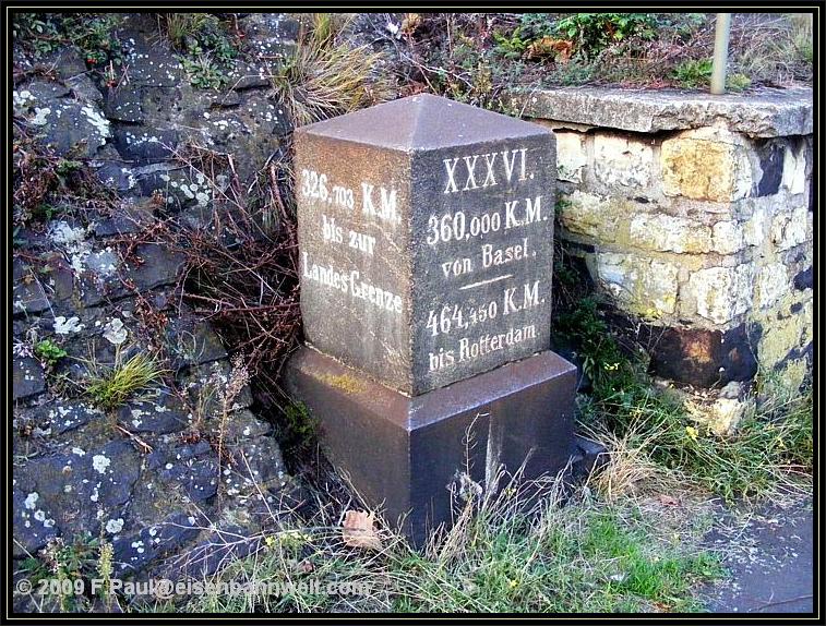 Sie werden ihn schon erspäht haben, den Rheinkilometerstein neben der SBB-Lok. Treten wir doch ein wenig näher heran: 360 Km sind es bis Basel, 464 bis Rotterdam.