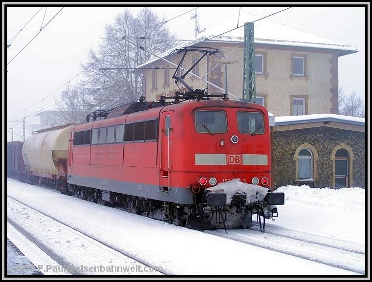 Da rollen auch schon die ersten Züge vorbei: 151 138 auf der Rückfahrt von Pressig-Rothenkirchen
