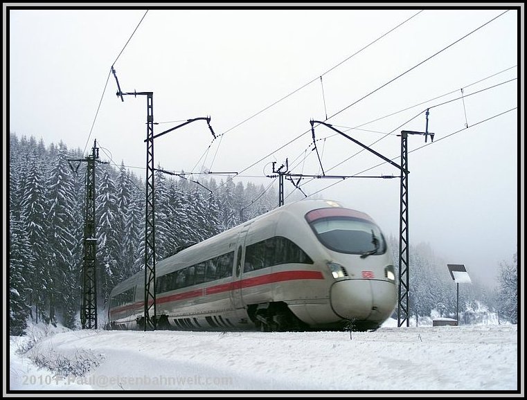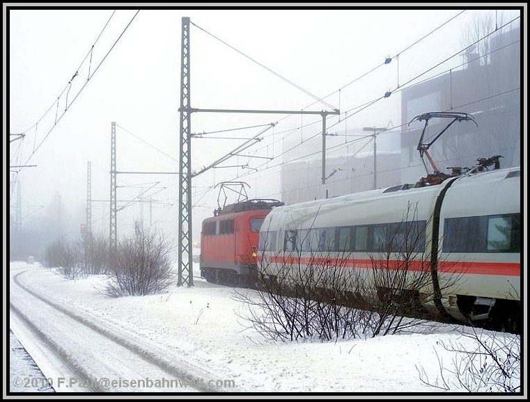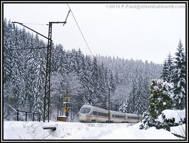 nach Probstzella, gefolgt von ICE 1610, leider ohne Vorspann-Tfz. Letzterer mit schönem Flugschnee und/oder