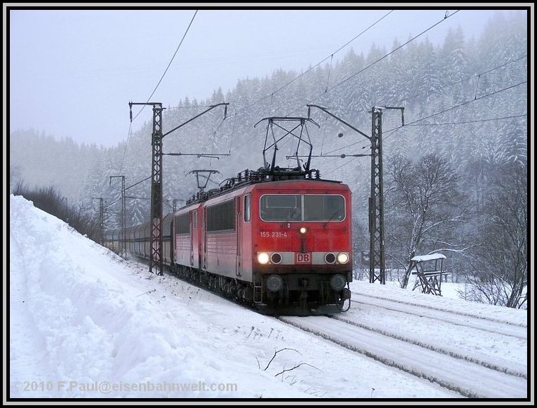 an mir vorbei. 155 231 hat sich in Saalfeld schon vor 155 066 gesetzt, 151 016 schiebt ab Probstzella nach. |
