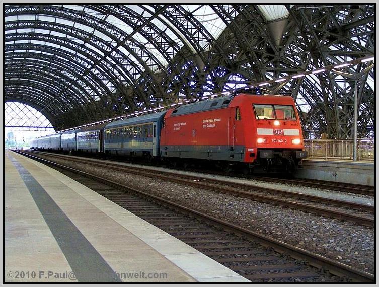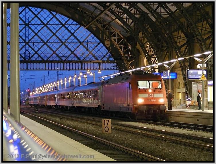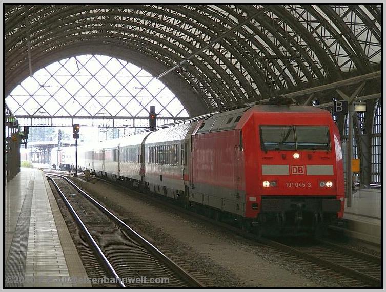 sind, ist dieser bespannt mit zwei Tfz der BR 101, vorn mit 101 045, hinten "schiebt" bis Leipzig 101 069. Irgendwie sieht
