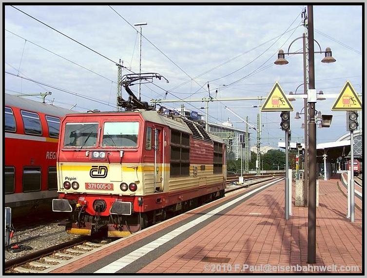 Am verlängerten Bahnsteig 1 dagegen wartet CD-371 005 auf EC 171 nach Budapest. Gemäß dem (deutschen) Vornamenlexikon "traumnamen.de"