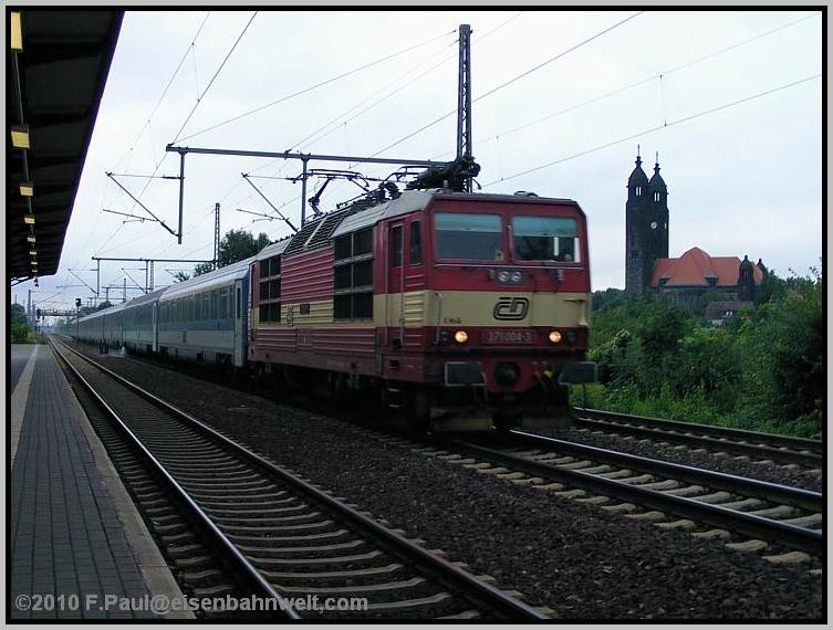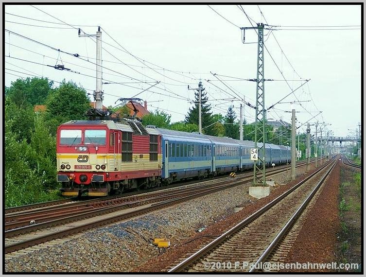 Aber auch von der anderen Seite läuft der Verkehr: 371 004 mit EC 176 (Brno-Hamburg) und dann, als