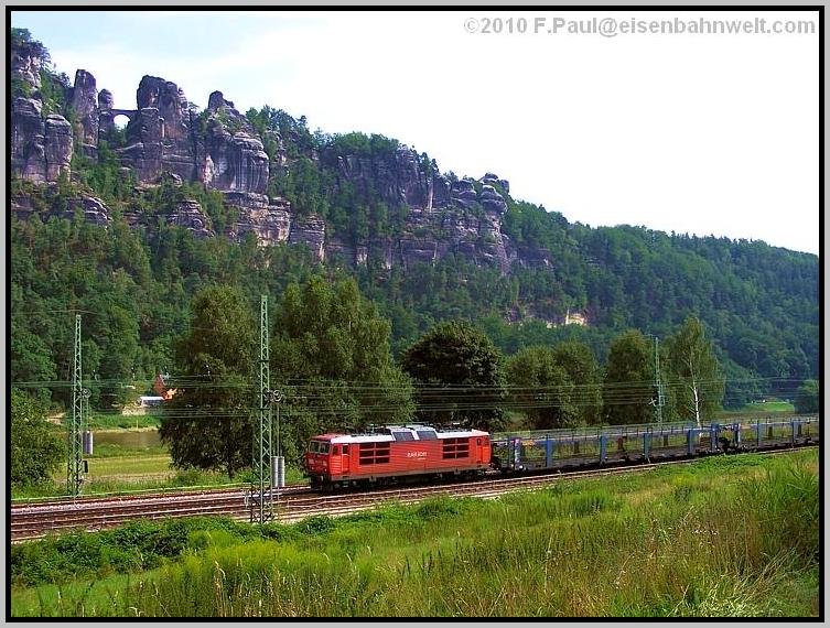 der Bastei im Hintergrund. Nur einen Wermutstropfen gibt es: Die Überholgleise werden erneuert und sind durch