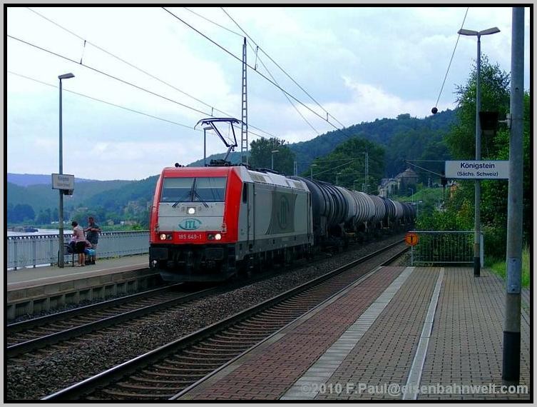 leere Kesselwagan von Berlin-Ruhleben zur CD, sowie in der Gegenrichtung 185 649 mit DGS 48362, diesmal mit gefüllten Kesseln, etwa 2000 Tonnen hängen am Zughaken.