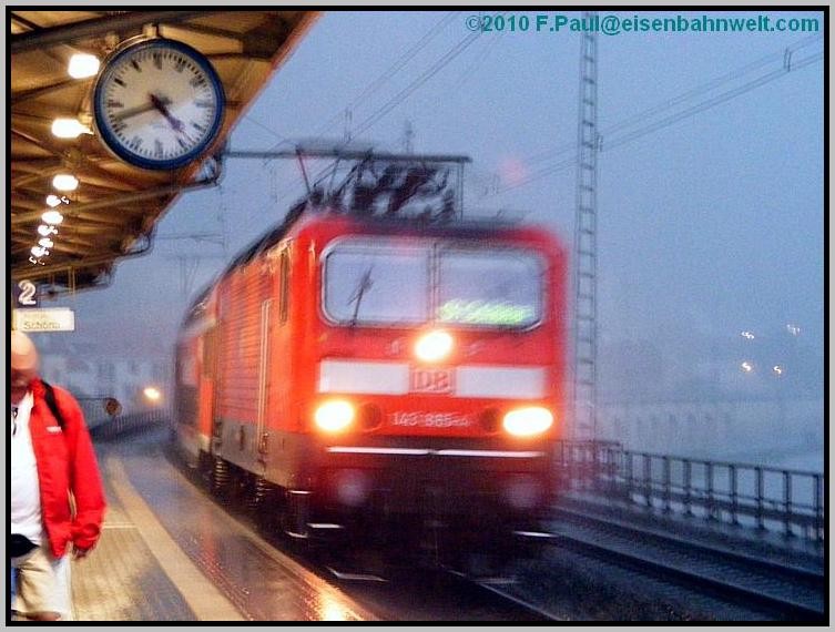Als aber eine Viertelstunde später 143 865 mit S 7057 an den Bahnsteig fährt, ist die Hölle losgebrochen. Es ist noch nicht einmal 17.00 Uhr,